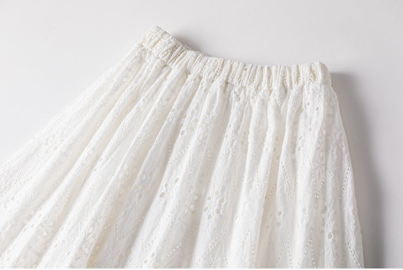 Cotton Eyelet Lace Lined Skirt