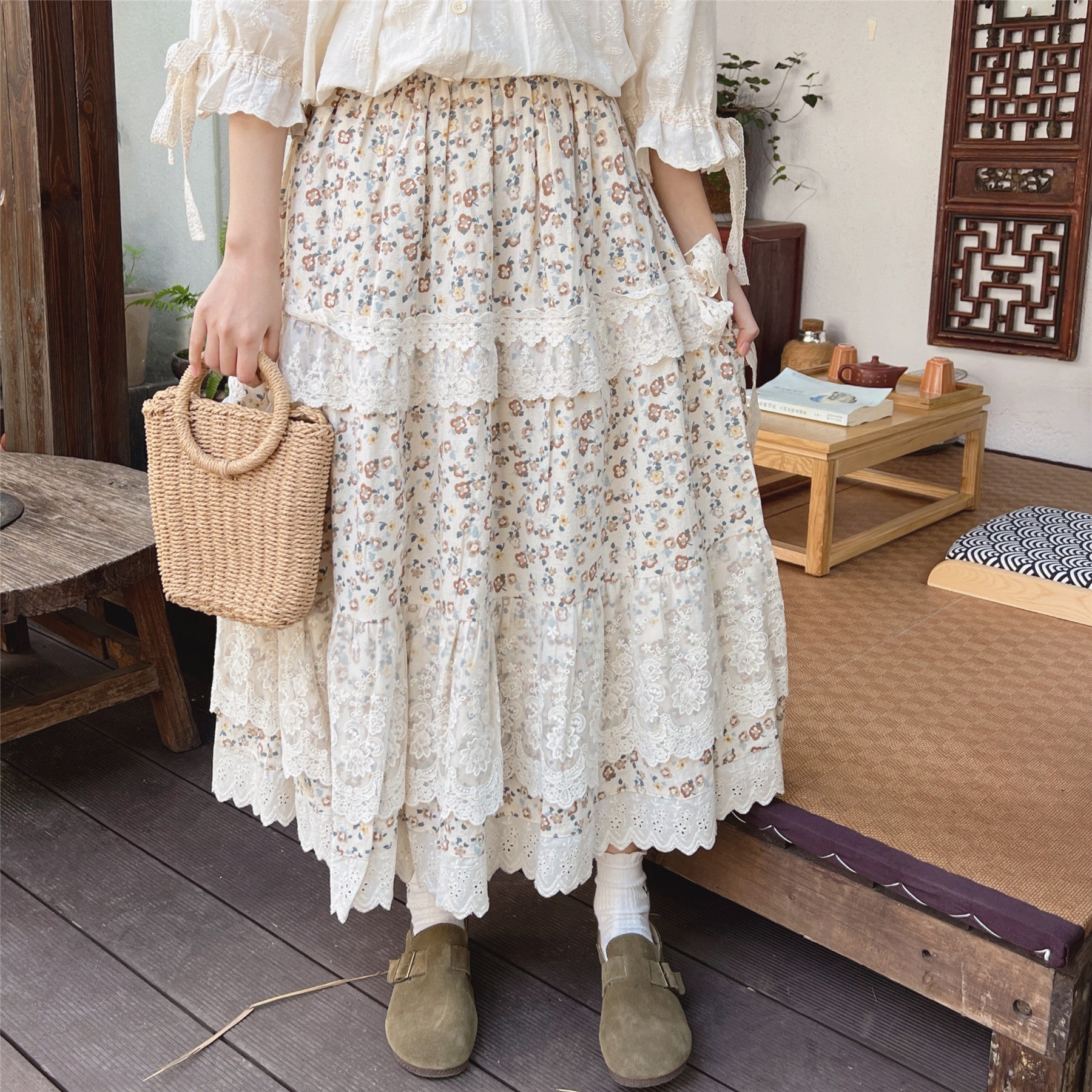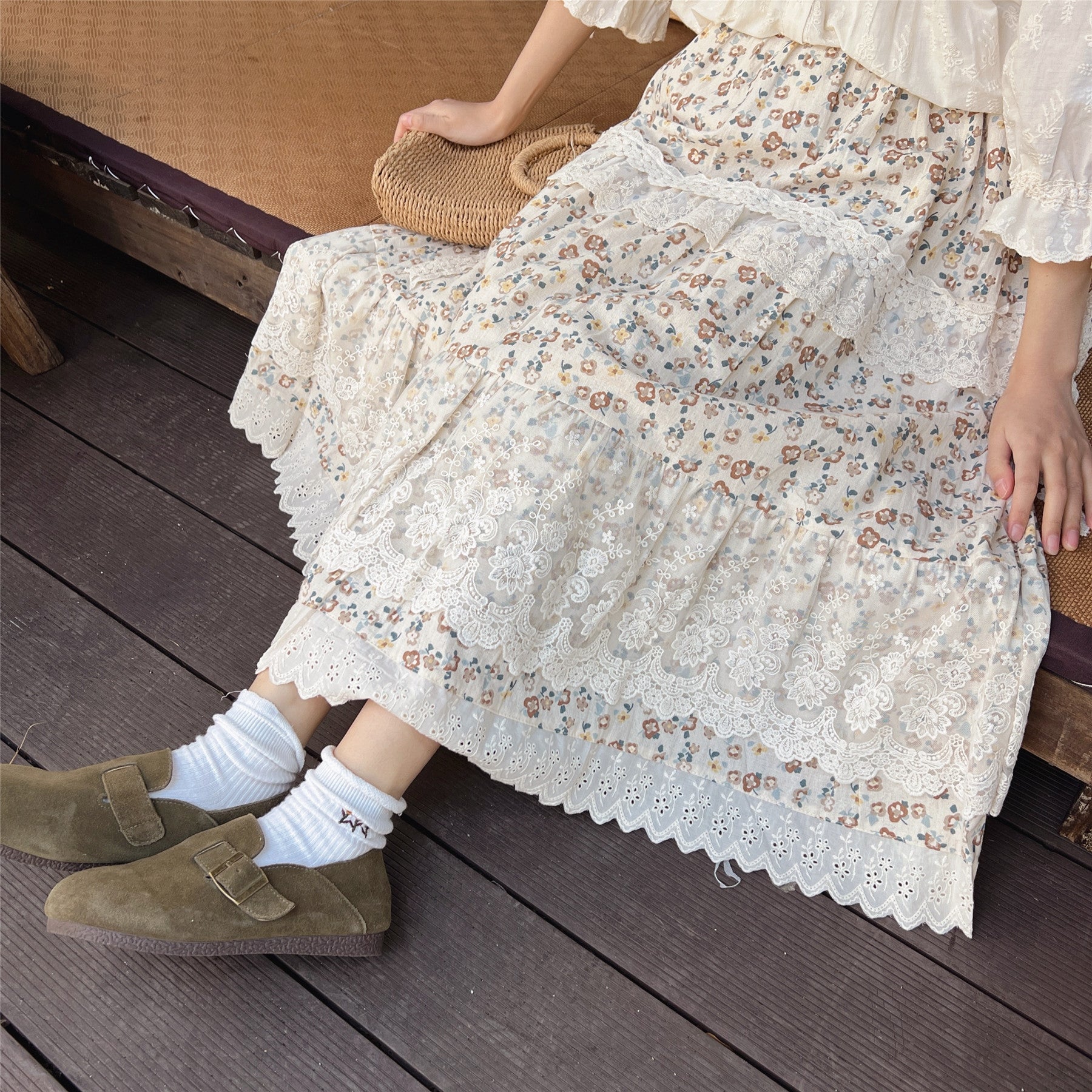 Classicdenimvest Lace Trim Floral Skirt